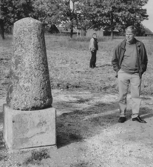 Pekka Tätilä at a pillar marking one terminal of the Simuna baseline.